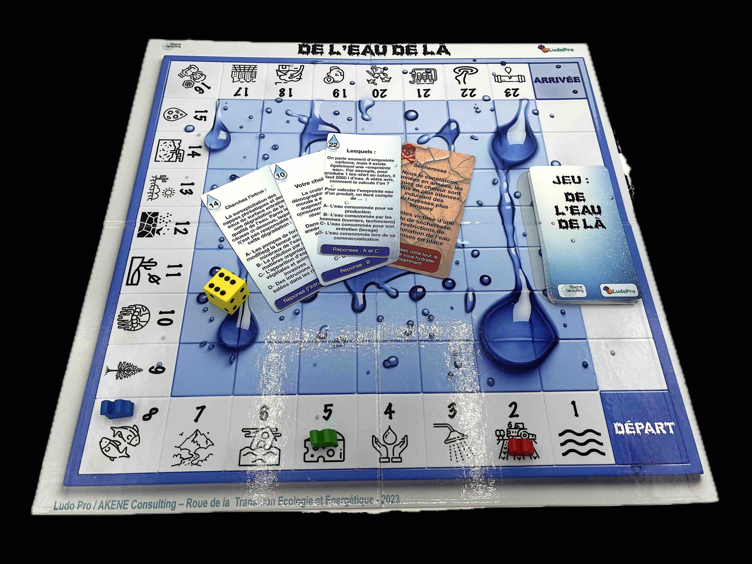 L’eau est essentielle à la vie, mais êtes-vous vraiment conscient de ses enjeux actuels ? Au travers de ce jeu ludique et pédagogique, vous et votre équipe serez confrontés aux défis majeurs liés à la gestion responsable de la ressource en eau sur Terre. En répondant à des questions concrètes et en adoptant les bonnes attitudes, vous avancerez ensemble pour préserver cette ressource vitale.